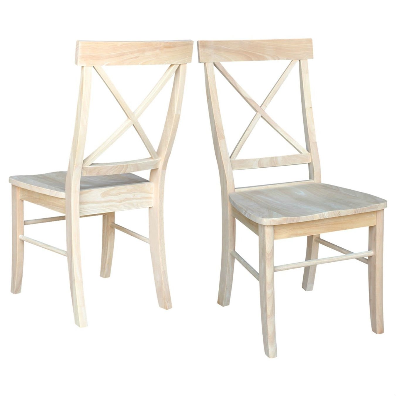 Home > Set of 2 - Unfinished Wood Dining Chairs with X-Back Seat Backrest