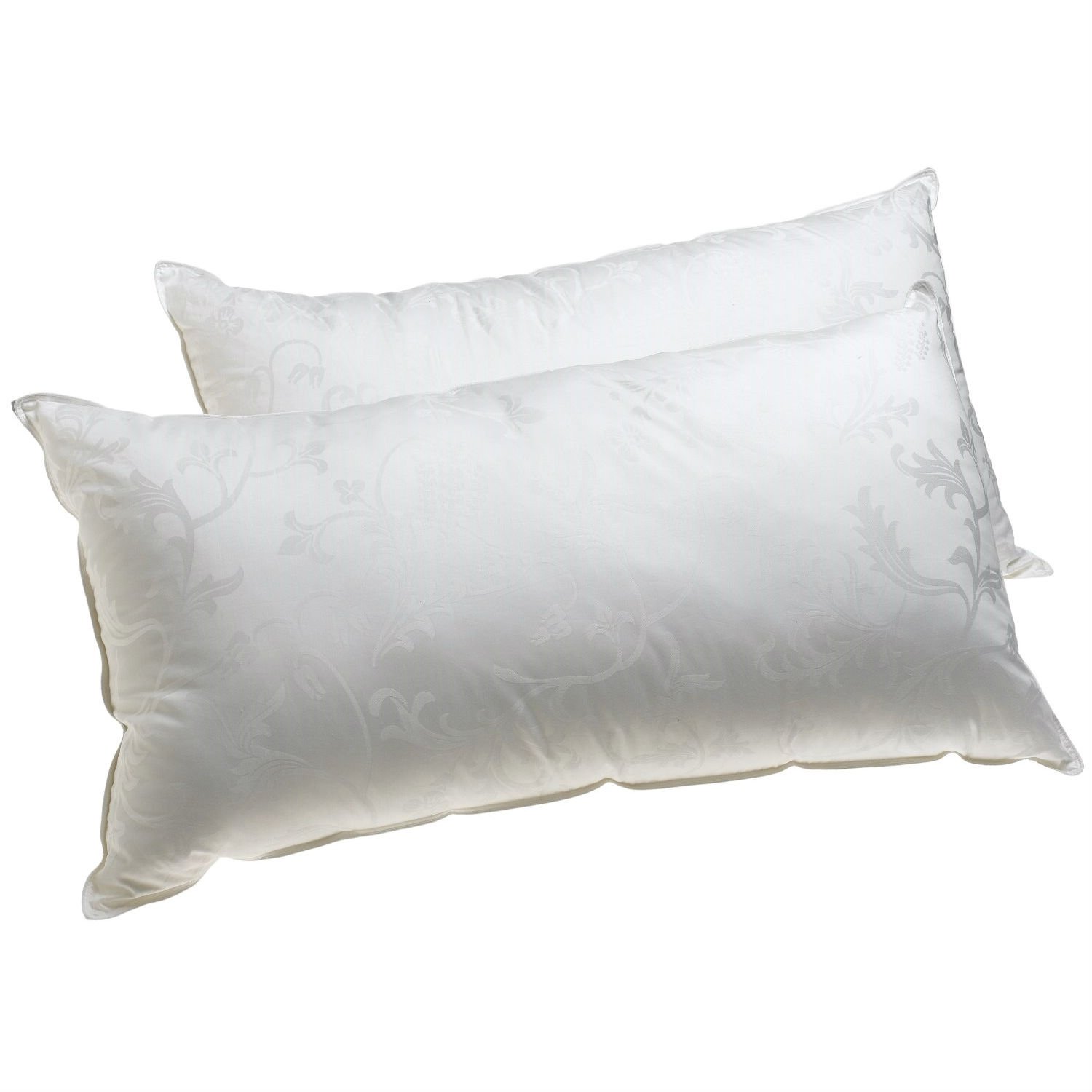 A great alternative to down, this Set of 2 - King size Hypoallergenic Pillows with Gel Fiber Fill uses a revolutionary polyester gel fiber fill to create a lastingly comfy sleep surface. Hypoallergenic, the pillows deliver great loft recovery and, unlike down, will not shift shape and lose support where it counts in the middle of the night. For added comfort, each pillow comes with a pretty shell made from 370-thread-count, mercerized cotton with a floral jacquard pattern. The entire piece goes in the washing machine and dryer on a cool setting for easy upkeep. The manufacturer recommends this pillow for back, side, or stomach sleepers and backs it with a one-year limited warranty.