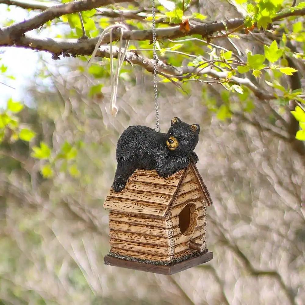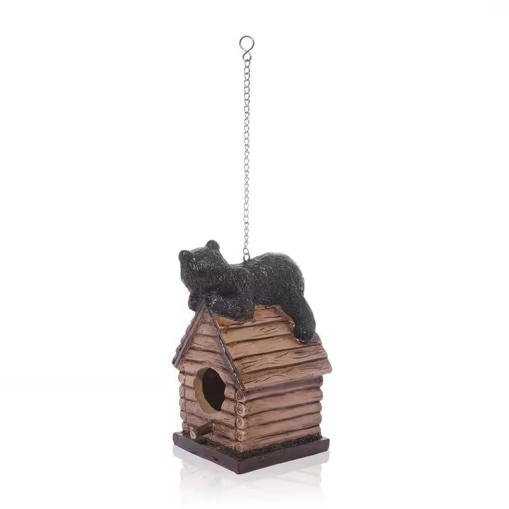 Lure all types of birds to your backyard with this Outdoor Polyresin A-Frame Birdhouse in Brown Wood Finish Bear Figurine . Enjoy watching all the birds congregate from the comfort of your couch or while at the table having dinner with your family or working on art projects with the kids. These durable birdhouses will be appreciated as a reliable place to stay for the little birds, while you get to enjoy all that enticing cuteness-buzzing wings, iridescent color, & tiny features-up close.