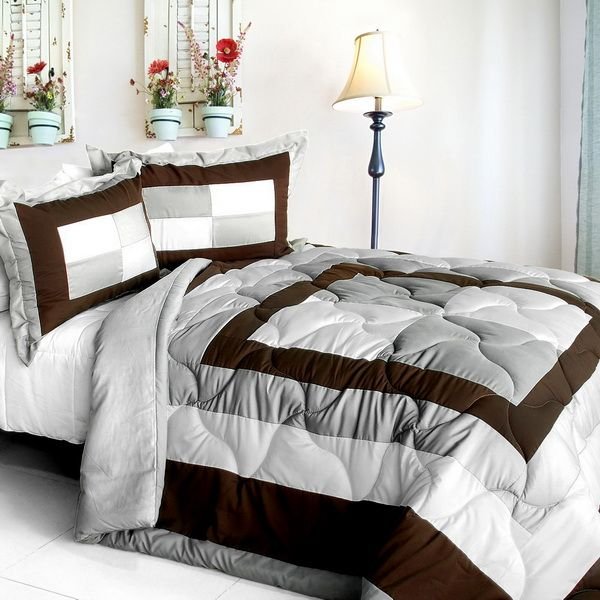 The [Bloom Laraine] Patchwork Comforter Set (Full/Queen Size) includes a quilted down alternative comforter and two shams. This luxury comforter set is handmade and some quilting may be slightly curved. The luxury handmade comforter set makes a stunning and warm gift for you and a loved one! For convenience, all bedding components are machine washable on cold in the gentle cycle and can be dried on low heat and will last for years. Elaborate vermicelli quilting provides a rich surface texture. This vermicelli-quilted comforter set will refresh your bedroom decor instantly, create a cozy and inviting atmosphere and is sure to transform the look of your bedroom or guest room. Enjoy a good night's sleep in this luxurious comforter set. (Dimensions: Full/Queen comforter: 90.5 inches x 90.5 inches; Standard sham: 24 inches x 33.8 inches) Cover: Microfiber, soft and high tenacity; Down alternative comforter: 300GSM. Features elaborate hand-stitching patchwork with timeless appeal.Creates a cozy, luxurious and inviting atmosphere; Enjoy a good night's sleep. Pre-washed, pre-shrunk, reversible and vermicelli-quilted for elegance and durability. Fashionable design; Fine and Concentrated stitches; Machine washable and dryable.