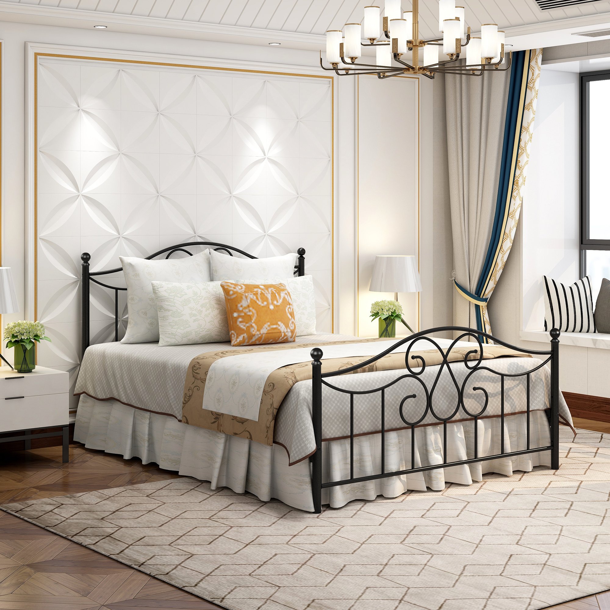 Easy Assembly Metal Bed Frame: Bed frame can be effortlessly assembled under detailed instruction included. All parts are clearly labeled and well packaged. Easy to disassemble for storage or movement. Installation is recommended for 2 people
