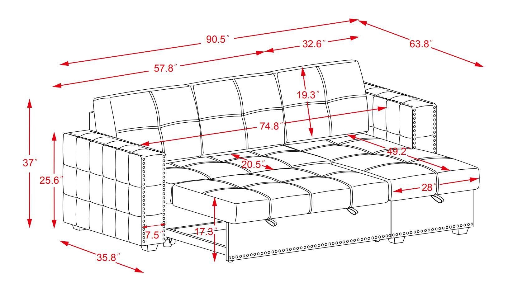 1.INTEGRATE INTO YOUR FAMILY: Blending classic and rustic elements, this sectional sofa includes 2 seats sofa with pulled out bed and reversible chaise with storage. It brings elegant style to your living room and blending well with any home decor.