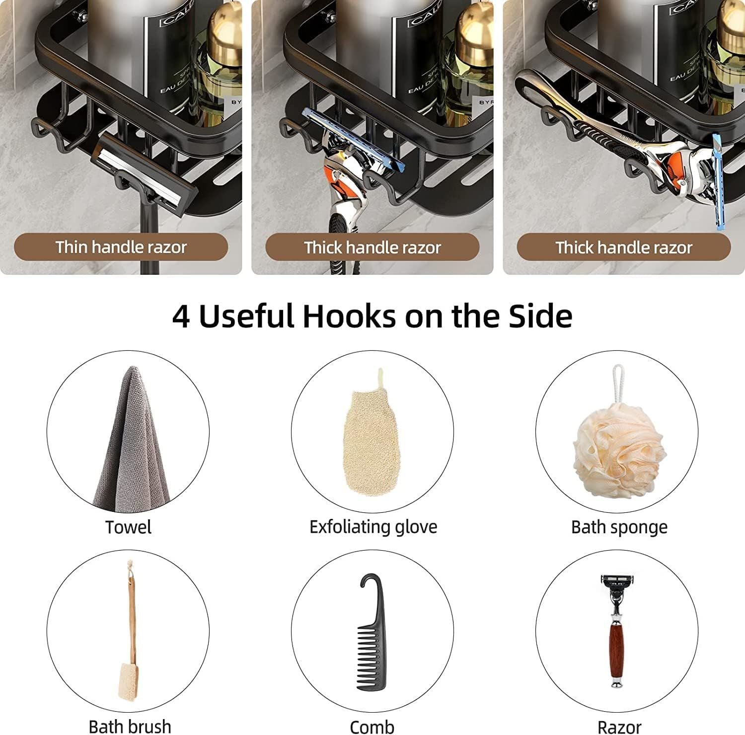 3.[UPGRADED BLACK ANTI-RUST FINISH]The black high-temperature baking paint process makes the surface of the shower rack smooth, durable, rust-proof,waterproof and resists daily scratches. Great for bathroom or kitchen.