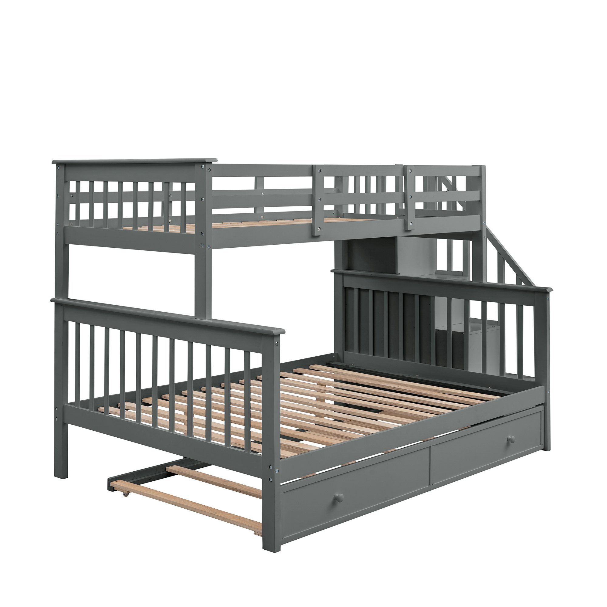 Home > Stairway Twin-Over-Full Bunk Bed with Twin size Trundle, Storage and Guard Rail for Bedroom, Dorm, for Adults