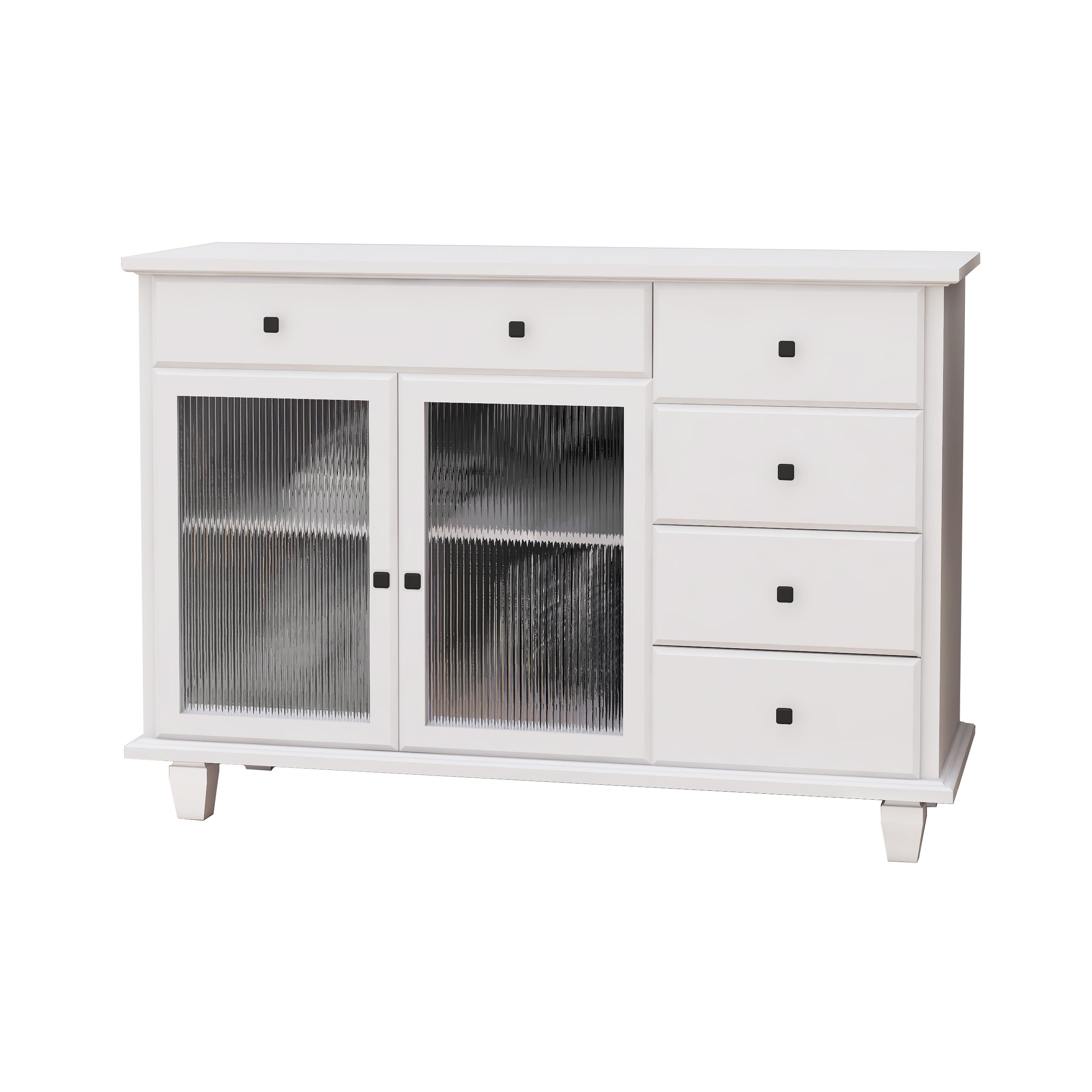 Home > Super White Changhong Glass 5 Drawer 2 Door Cabinet-White
