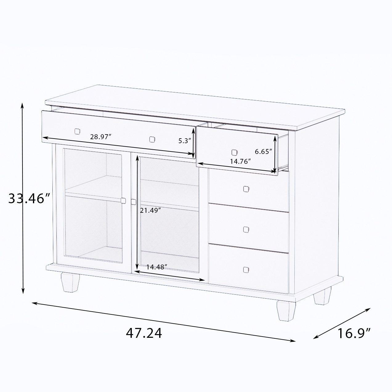 VERSATILE STORAGE: This storage cabinet offers a cabinet with glass doors and five small drawers for storing and organizing your belongings. Five drawers for your different partitioning requirements This cabinet also has a removable shelf that can be changed to meet your storage needs by changing the different heights.