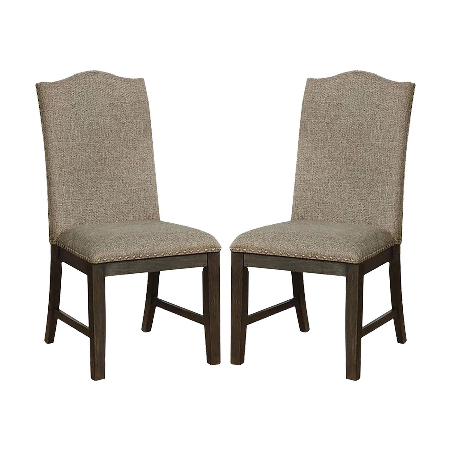 Transitional Set of 2 Side Chairs Espresso Warm Gray Nail heads Solid wood Chair Fabric Upholstered Padded Seat Kitchen Rustic Dining Room Furniture