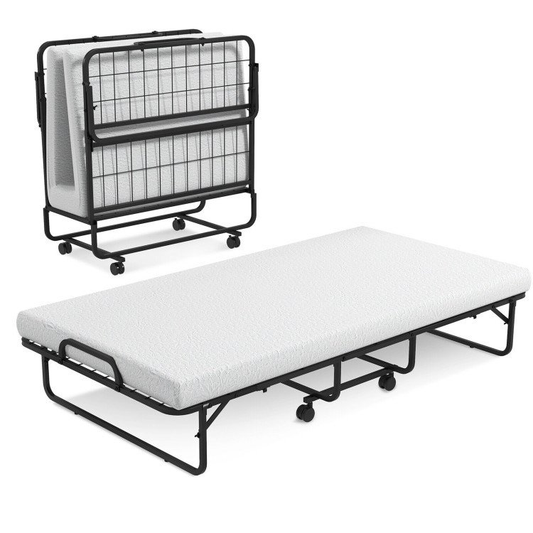 Twin Size Metal Folding Bed with Memory Foam Mattress