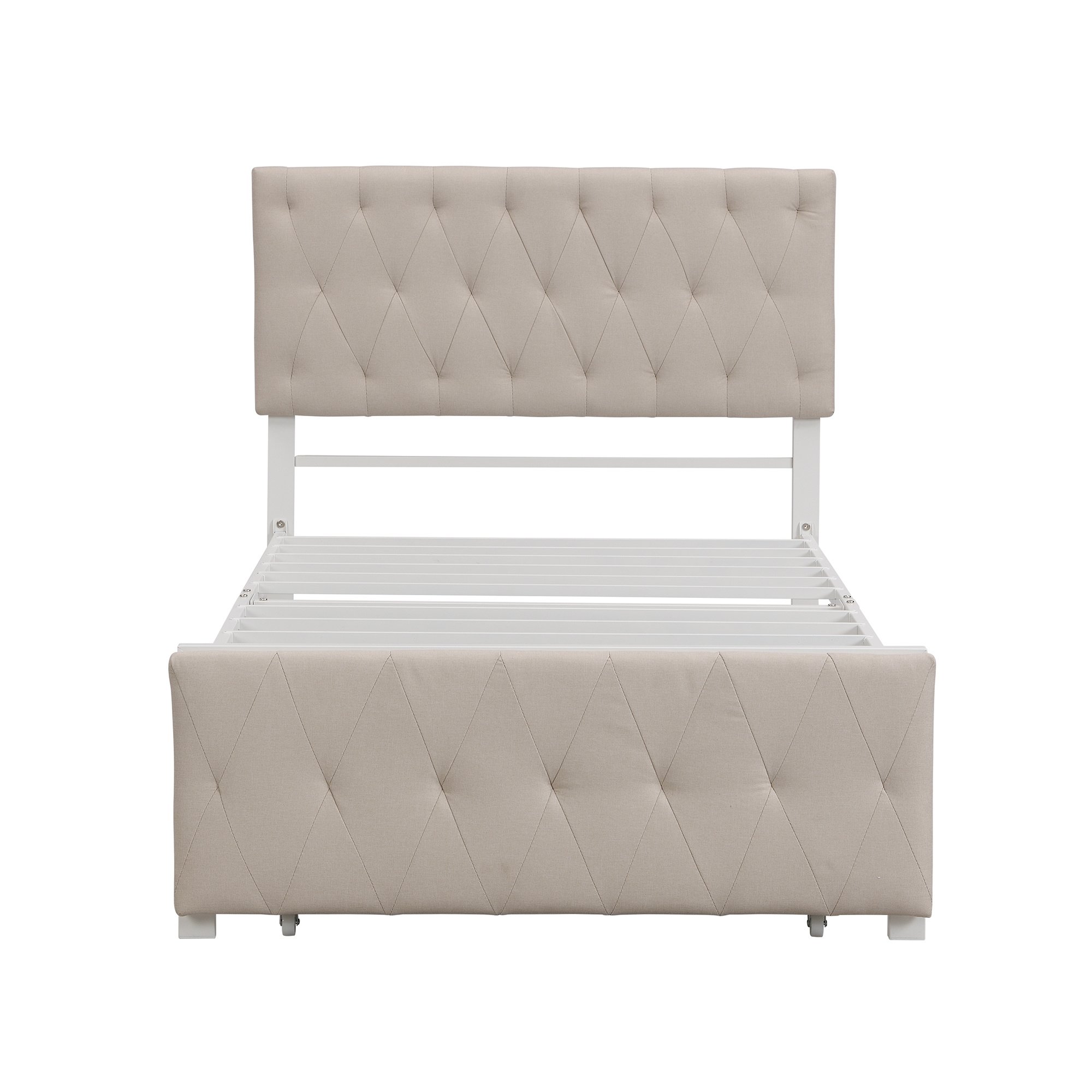 Twin Size Storage Bed Metal Platform Bed with a Big Drawer - Beige
