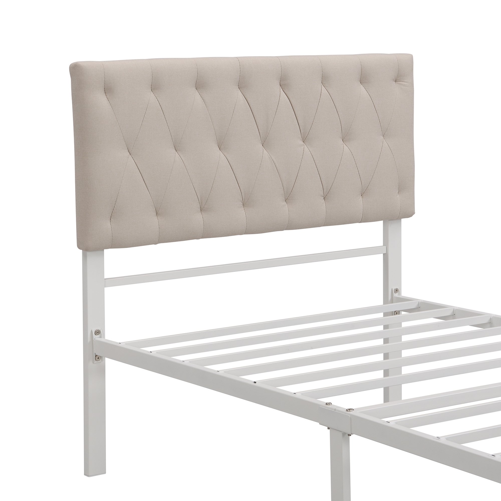 [Elegant Design] Upholstered in carefully-selected linen fabric, in elegant beige, and with docorative details, this platform bed not only suits any home décor, but is timeless in its design. The soft textile bedhead creates coziness, while the single color of the design creates versatility. [Maximized space]The platform bed with a big drawer can easily be pulled in and out for maximum storage space, perfect for organizing anything from clothes and bed linens to toys and games. Such a versatile piece, bringing functionality, versatility, and style to your home, perfect for those who have lots of visitors. [High Quality Build] The heavy duty metal framework construction provides superior durability and stability allowing your bed to last you for years to come. Complete with thick built-in metal slats for optimum anti-sagging mattress support. [No Box Spring required] With 13 reinforced slats, the mattress (not included) will be well supported and your body weight will be evenly distributed for a great sleeping experience. Enjoy the convenience and unparalleled ease of use that this metal platform bed provides. Headboard is included as a comfy linen fabric backrest that brings you and your partner a cozy feeling. [Dimensions] Overall Dimension: 77.9 x 42.2 x (40.2 or 44.2) inches (L x W x H) Mattress dimension: 75 x 39inches (L x W). Mattress is not included. Warranty: 1 year.