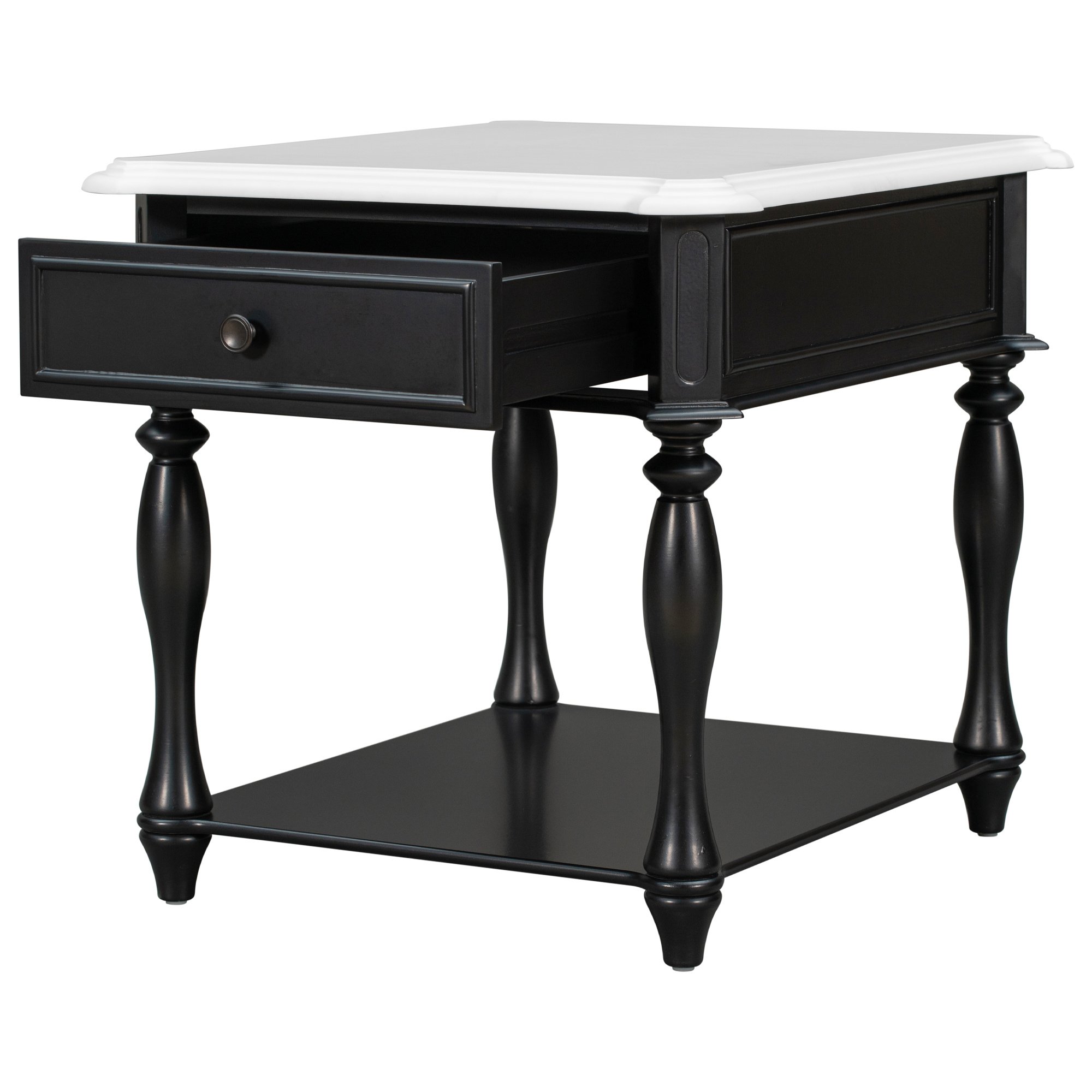 Two-Tone Finish: The contrasting surface of this end table adds visual interest and character to its classic design.