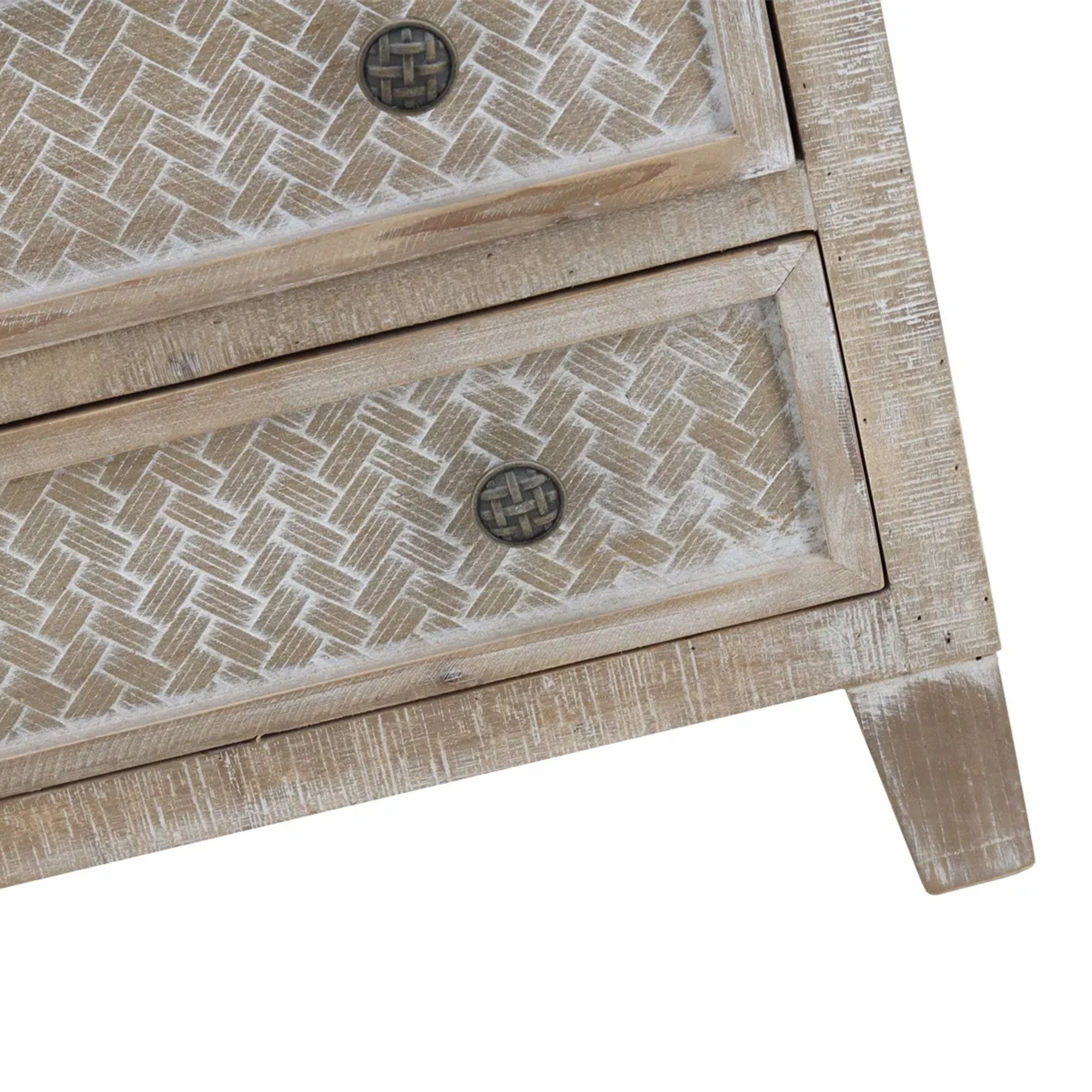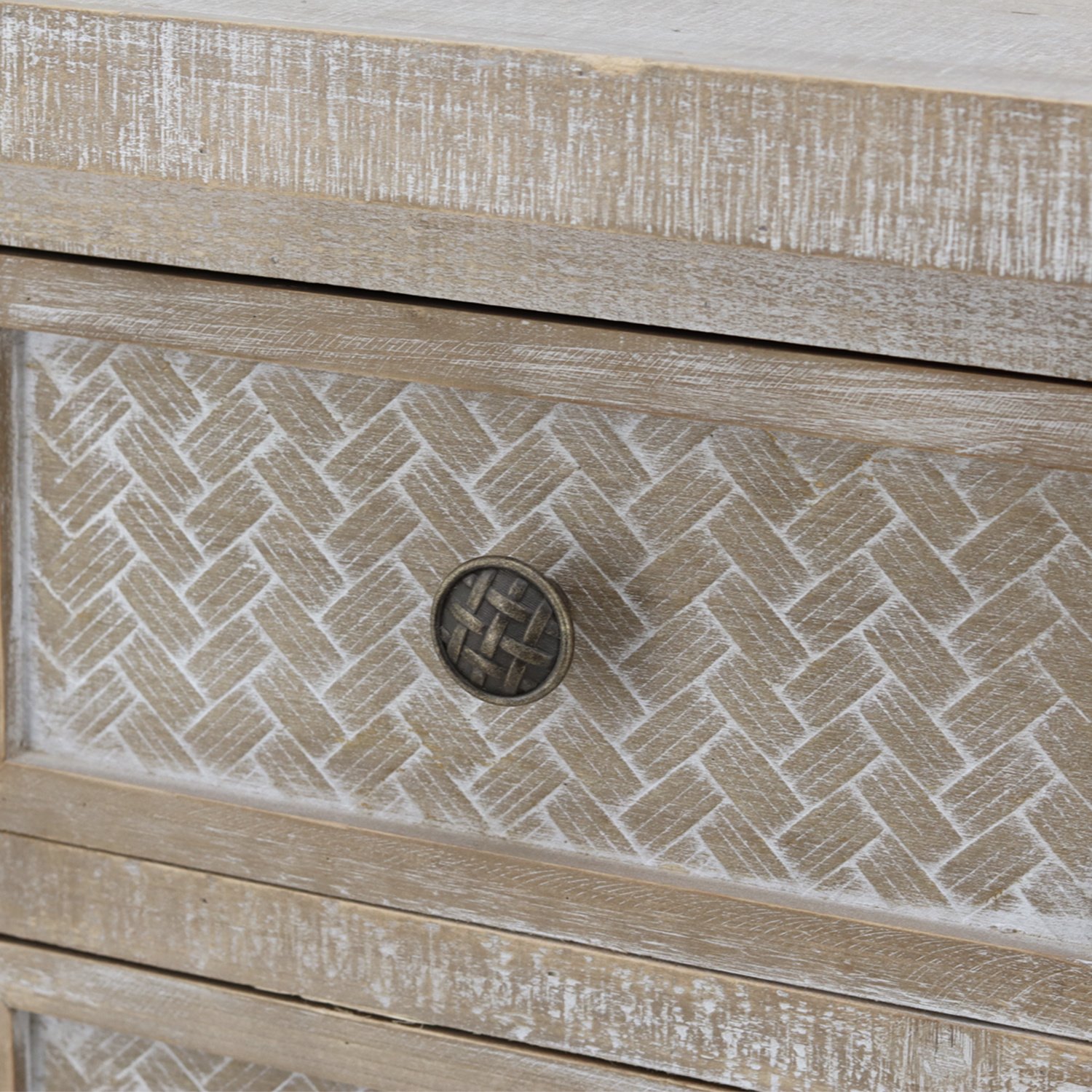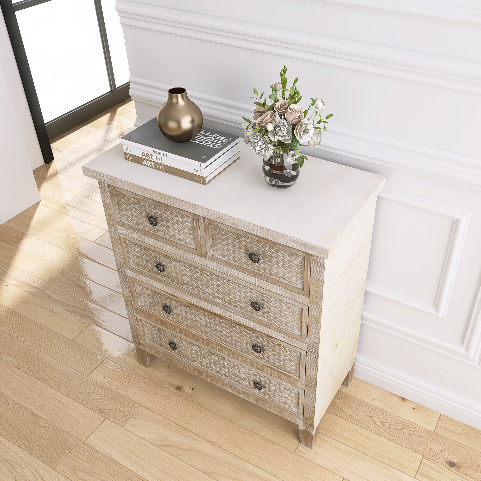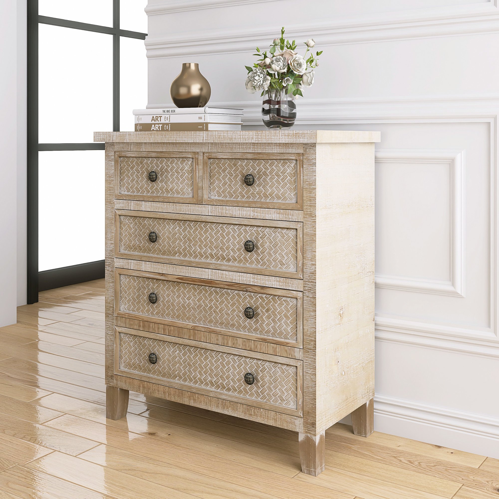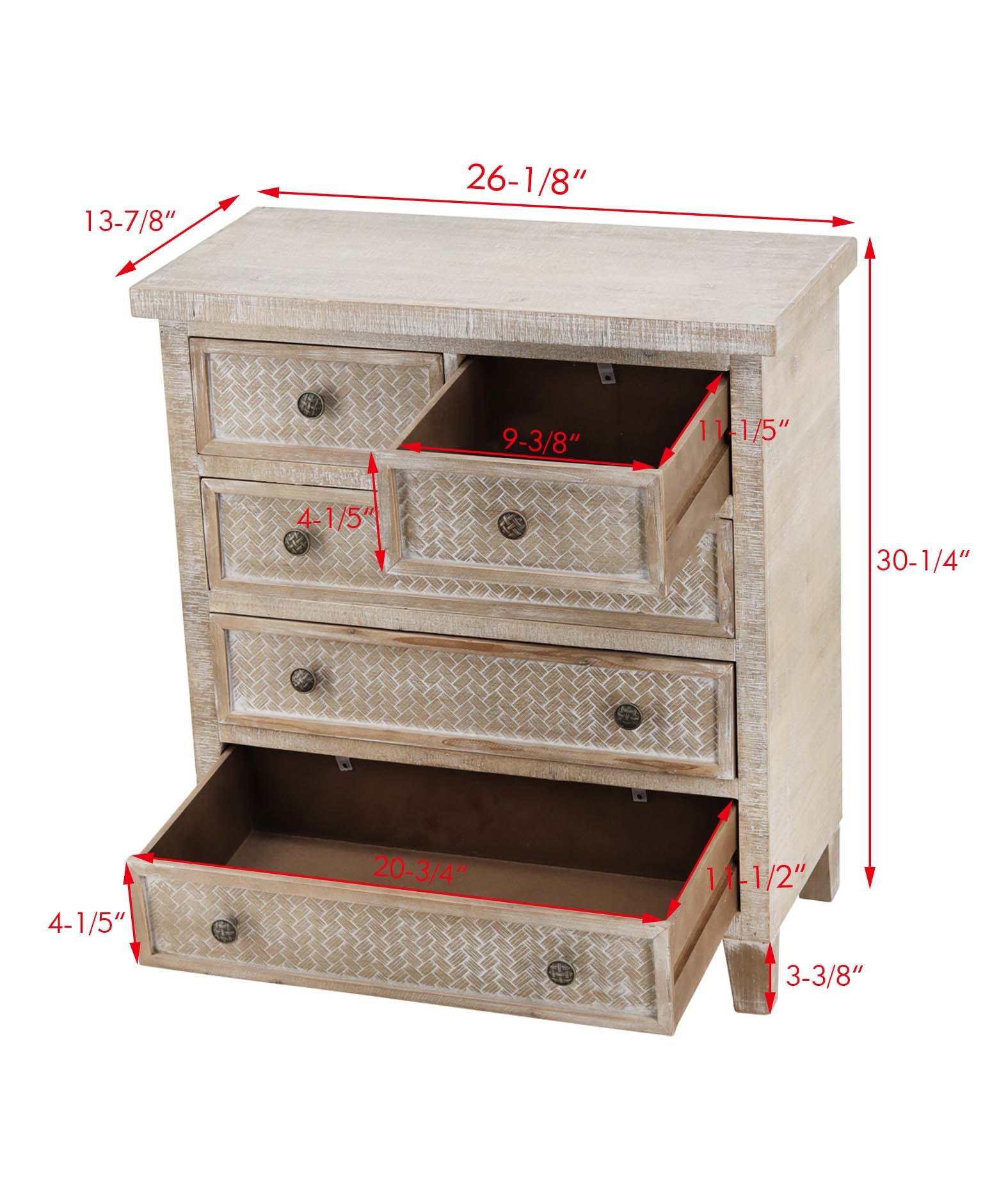 2.Features 5 drawers with faux bamboo weaving design, giving it a rustic touch.
